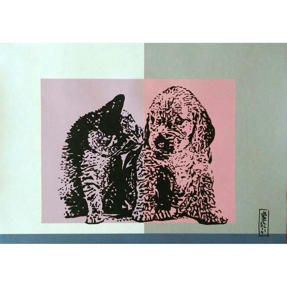 The research of Nicoletta Belli moves from a figurative area to grow, over the years, in a sort of hybridization between natural science and geometric abstraction. The works develop on two different levels: the first is geometrically ordered through chromatic forms, the second is illustrated by great faces borrowed from photography. These are images created through the black pictorialsign, where the detail of the physiognomical parts is given by the extreme contrast between lights and shadows, made by the electronic data processing and transferred on canvas with the acrylic technique. The results are eye-catching, majestic in their evocative power and, at the same time, chromatically complete. Belli achieved her original expression after having xperienced both the figurative research on nude subjects and the abstract-geometric composition. Unavoidably, the two areas merge together in her latest works exhibited here, which are obtained through a meticulous research based on the study of the historical movements of abstract art (Mondrian, Kandinsky ...) and their theories of composition, along with the process of stylization of the figure, typical of Futurism and Cubism (Depero, Picasso, Léger ...). She manages to deduce an unexpected and mature summary of these theories, standing out for her personal style, her compositional precision and her skillful technique that characterise her paintings. The latest works are the demonstration of the concreteness of her study, that led her to an original maturity of expression. If, as written by Picasso, the originality is the recognition of one’s own origin, Nicoletta has revealed it.